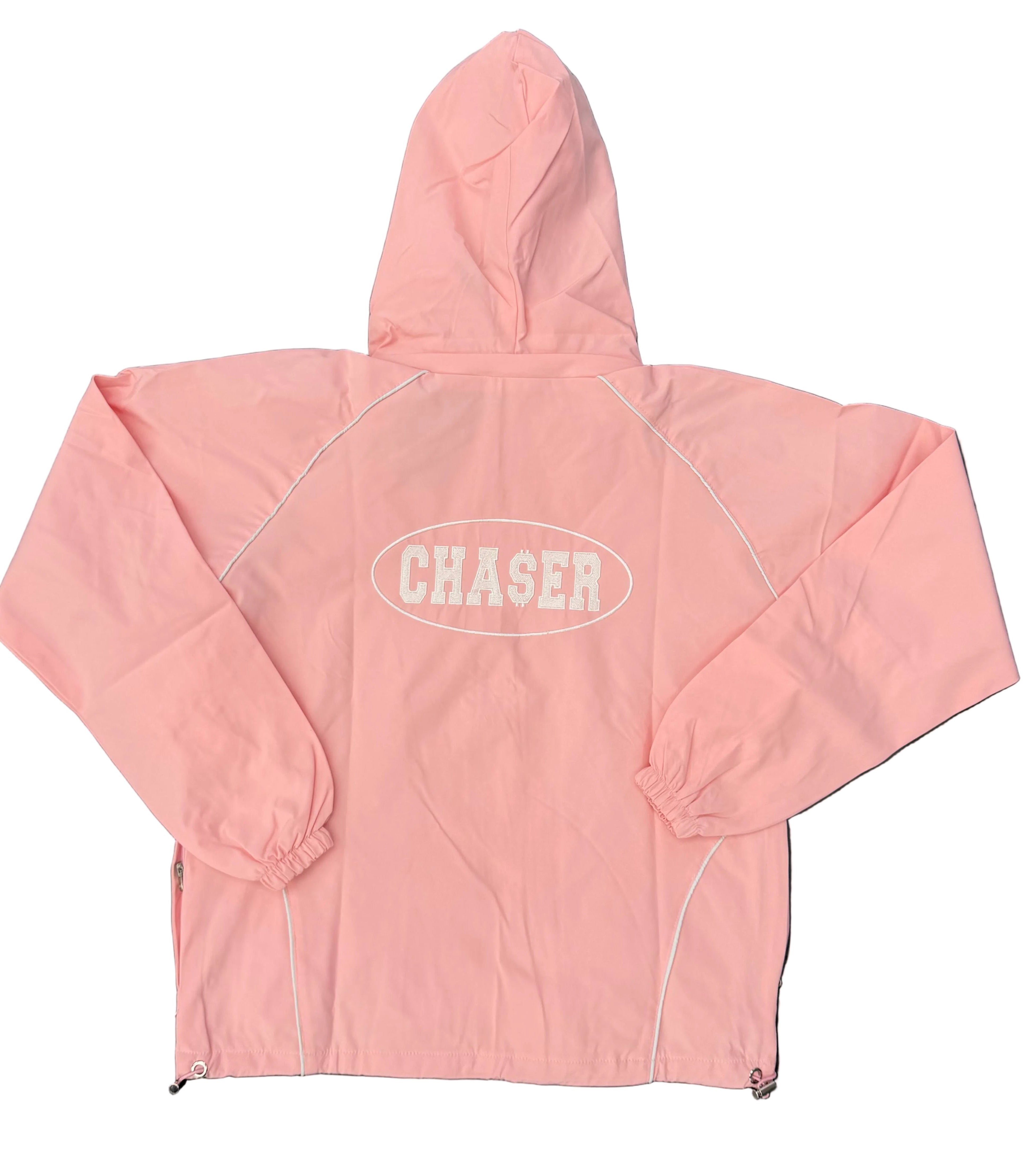 Chaser Windbreaker Removable Hood Pink / White Zip Up Jacket